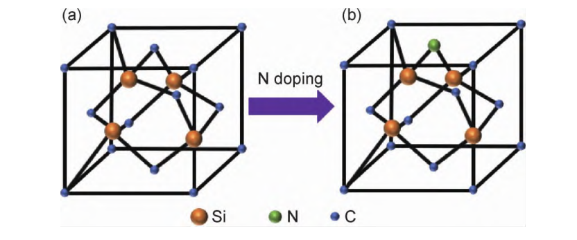 (a)3C-SiC晶體結構;(b)N摻雜的3C-SiC晶體結構