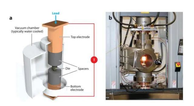 放電(diàn)等離子燒結是利用脈衝電(diàn)流作用於導電模具內的試樣,在較短(duǎn)保溫時(shí)間內(1~10min)燒結樣品的一種(zhǒng)方法,且其升溫速率通常大於100℃/min。通(tōng)過這種向粉末施加(jiā)單軸載荷和脈衝直流電流的方式,可以使得難以燒(shāo)結的SiC陶瓷在較低的溫度和較短的時間內(nèi)實現致密化(huà),有效地抑製SiC的晶粒長大。因此,SPS可以實現材料的高致密度、精(jīng)細顯微組織和幹淨晶界(jiè),從而全麵提升材料的力學性能,但是SPS隻適用於製備形狀簡單的小(xiǎo)尺寸(cùn)樣品。