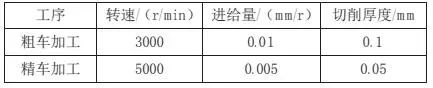 而法蘭與軸承(chéng)外圈的配合麵SφC 0-0.007mm,需要在滿足自身(shēn)精度和表麵粗糙度值(zhí)R a=0.2μm的同時,與φ(A±0.02)mm互為基準,一起滿足定位孔φ0.02mm同軸度和位置度的包(bāo)容要求。分析可知,大切削量條件下,保證(zhèng)各個(gè)尺寸(cùn)的位置精度和幾何公差是法蘭(lán)盤加工的難點,為滿足各個尺寸(cùn)自(zì)身的平麵度和表麵粗糙度條件,加工過程中切削參數的選擇就顯得尤為重要。