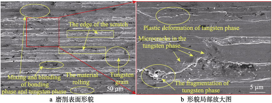 結合有限元(yuán)仿真、單磨粒刻劃實驗及磨削加工(gōng)鎢合金實驗,共同揭示了鎢合金的磨削加工去除機(jī)理,得到如下結(jié)論。